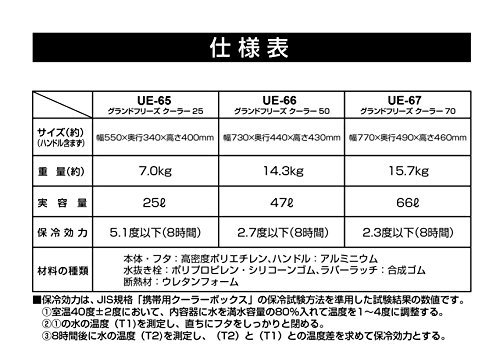 容量は、47リットル (外寸42 x 66 x 36 cm) 素材は発泡ウレタン・ポリエチレン。