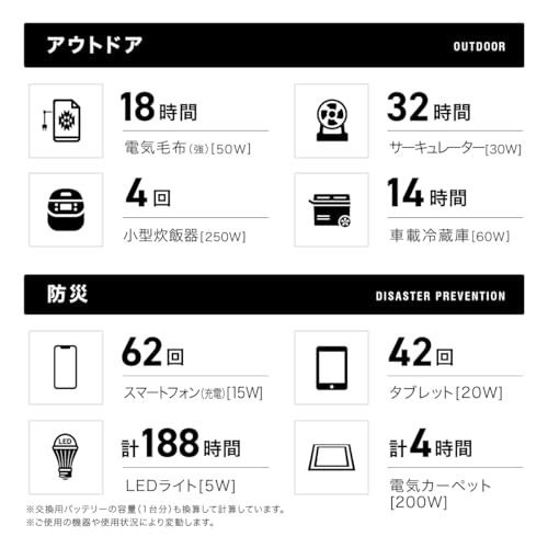 | (予備バッテリーのみ) | 555Wh | 3.8kg | 4時間 | 9時間 | 15時間 | 29,800円 |