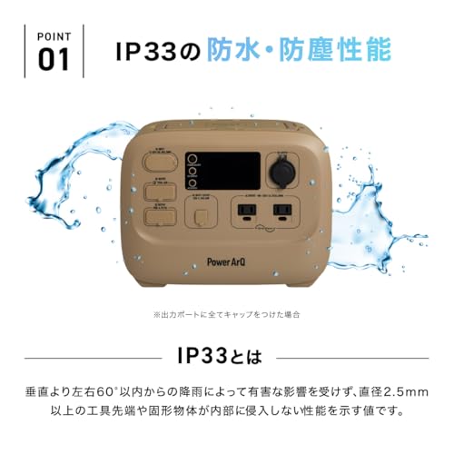 | Power ArQ 3 | 555Wh | 4時間 | 500W | 1000W | 2口 | IP33 | 79,800円 |